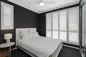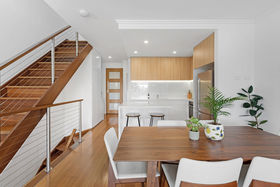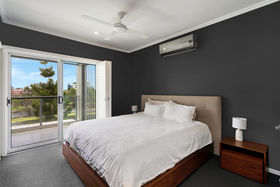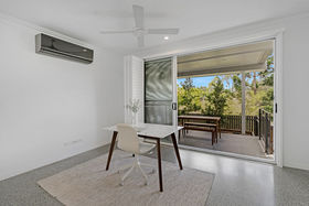 Comfort is assured with split-system air conditioning in the living area, ground-floor retreat, master bedroom, and second bedroom, plus ceiling fans in all bedrooms. The downstairs area offers a private retreat or work-from-home space, featuring its own split-system air conditioning, kitchenette, ample storage, and a sink.